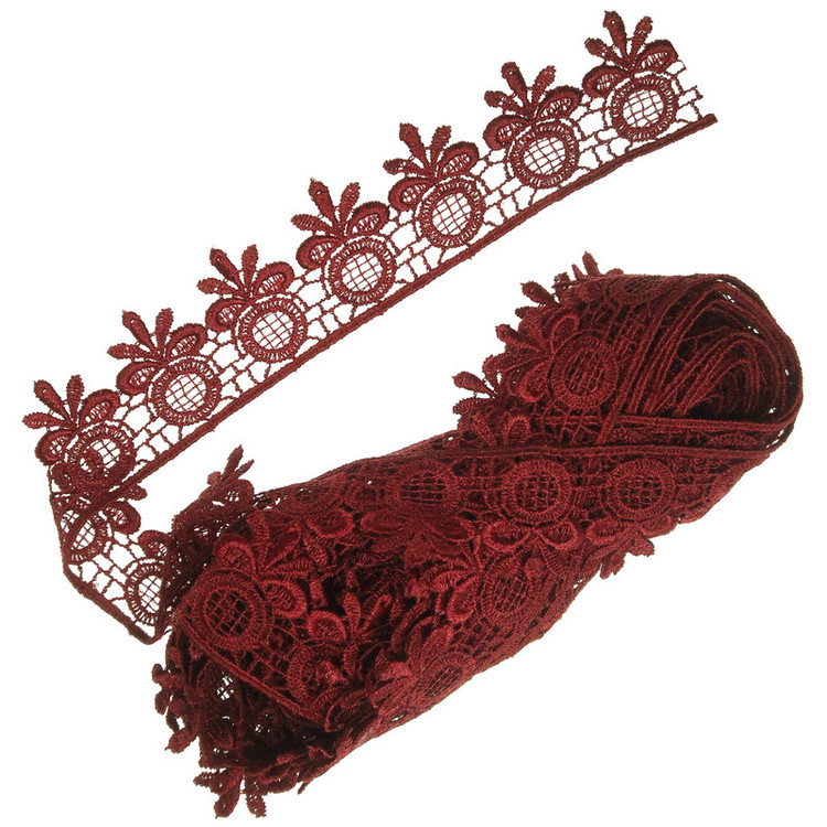 3.3 متر یراق گیپور زرشکی با عرض حدود 3.5 سانتی متر.مناسب تزئینات لباس مانتو و کارهای هنری و غیره.