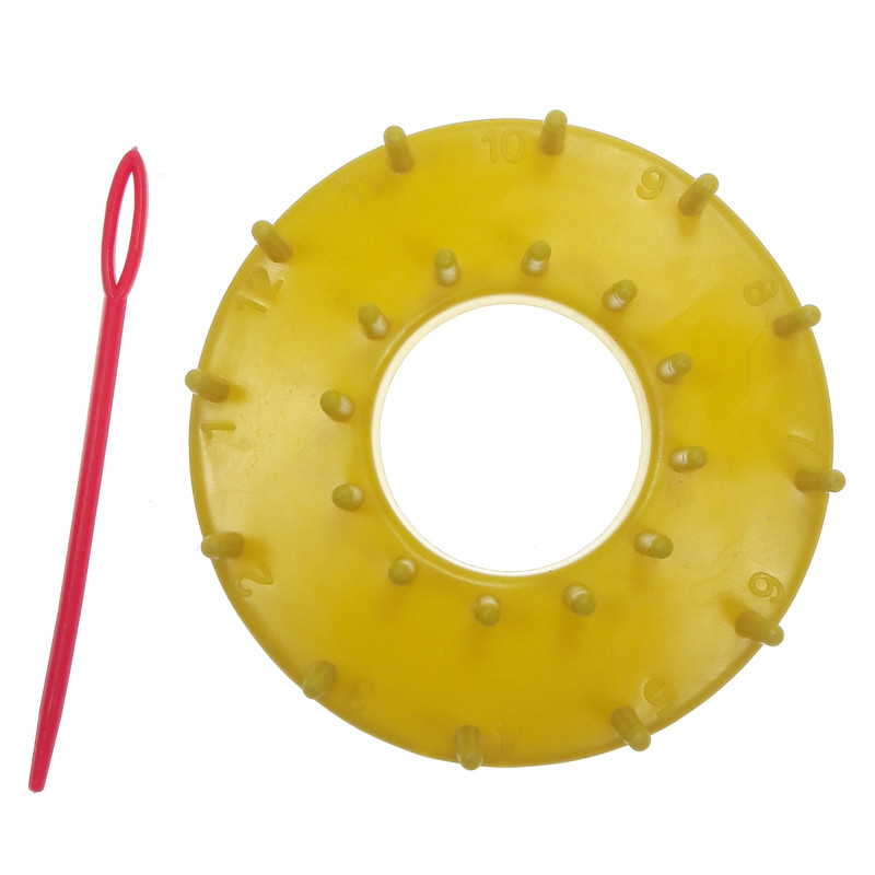 2 عدد کارگاه گرد موتیف به قطر 9 سانتی متر و ارتفاع 2.5 سانتی متر به همراه 2 عدد سوزن پلاستیکی.در مجموع 4 عدد(2 عدد کارگاه+2 عدد سوزن پلاستیکی)کارگاه بافت انواع گل با نخ قلاب کاموا و غیره.
