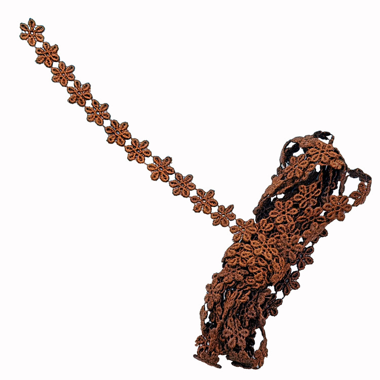 2 متر یراق گل گیپور قهوه ای متوسط.حدودا 140 عدد گل با قطر 13 میلیمتر در این بسته موجود است که می توان هم به صورت متری هم تک تک روی لباس مانتو کیف و کفش و کاردستی و غیره استفاده کرد.