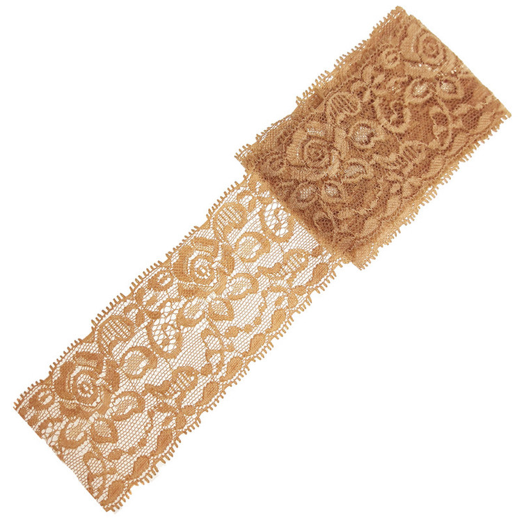 3 متر تور کش لطیف رنگ کرم شکلاتی با عرض 5.5 سانتی متر مناسب تزئینات لباس مانتو دامن و غیره
