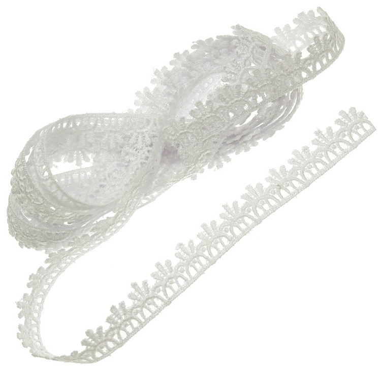 2.85 متر گیپور سفید با عرض حدود 1.5 سانتی متر مناسب تزئینات لباس مانتو و کارهای هنری