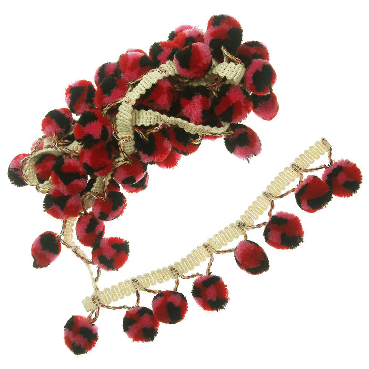 2 متر یراق پم پم منگوله ای با عرض حدود 4 سانتی متر رنگ قرمز_صورتی_مشکی.طرح و رنگ طبق عکس.مناسب تزئینات لباس مانتو و کارهای هنری.