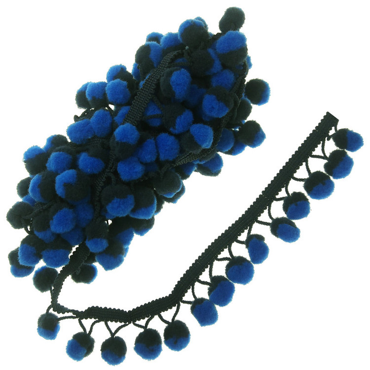 3 متر یراق پم پم منگوله ای با عرض حدود 3 سانتی متر.رنگ آبی_سرمه ای.طرح و رنگ طبق عکس.مناسب تزئینات لباس مانتو و کارهای هنری.