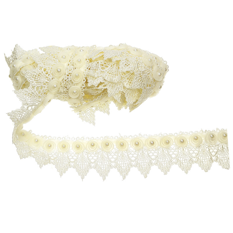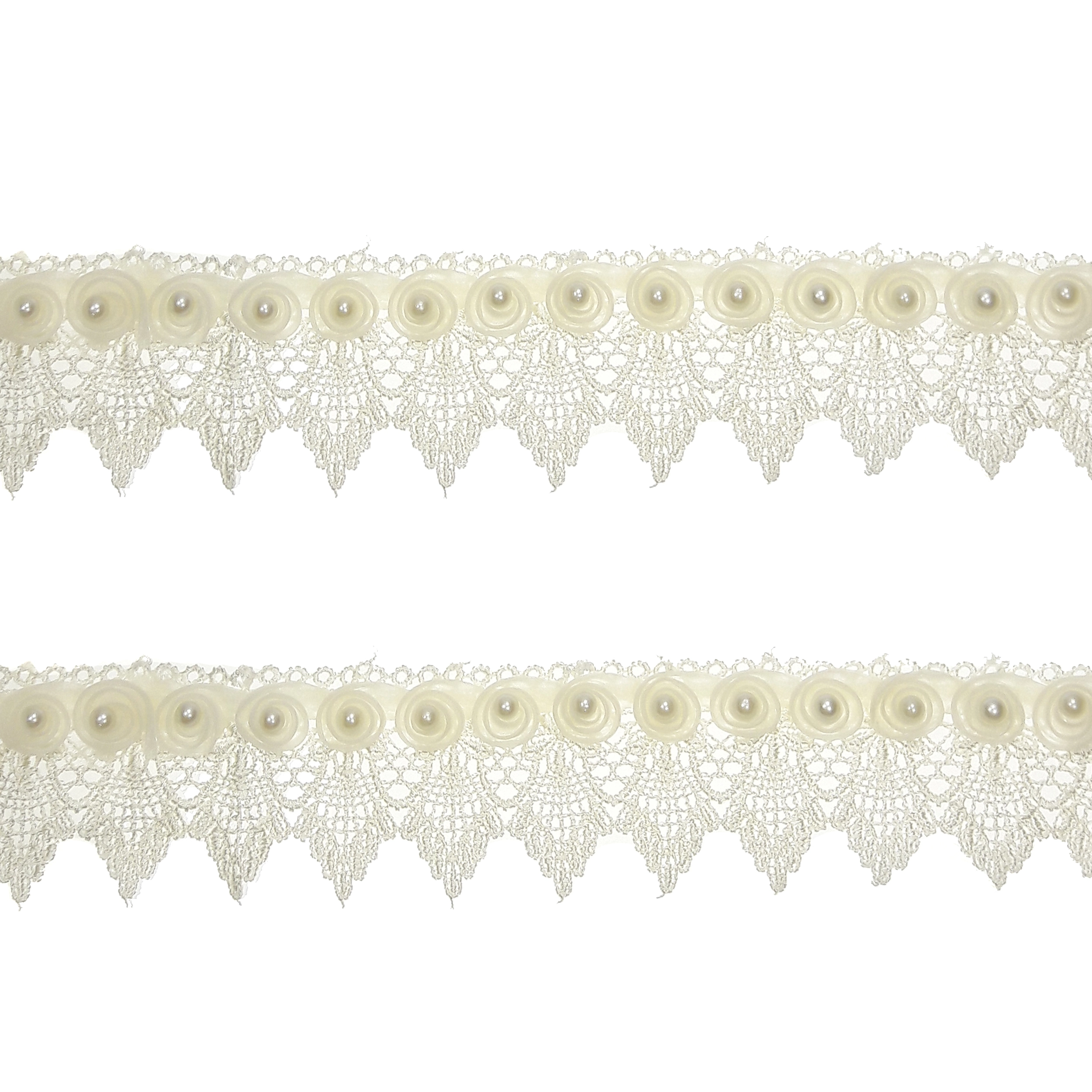 3.2 متر معادل 320 سانتی متر یراق گیپور کارشده با حریر و مروارید با عرض 5 سانتی متر رنگ شیری.تمامی مروارید ها پرچ شده و امکان ریزش نزدیک صفر رسیده.مناسب تزئینات لباس مانتو و کارهای هنری دکوری جعبه کادویی و غیره