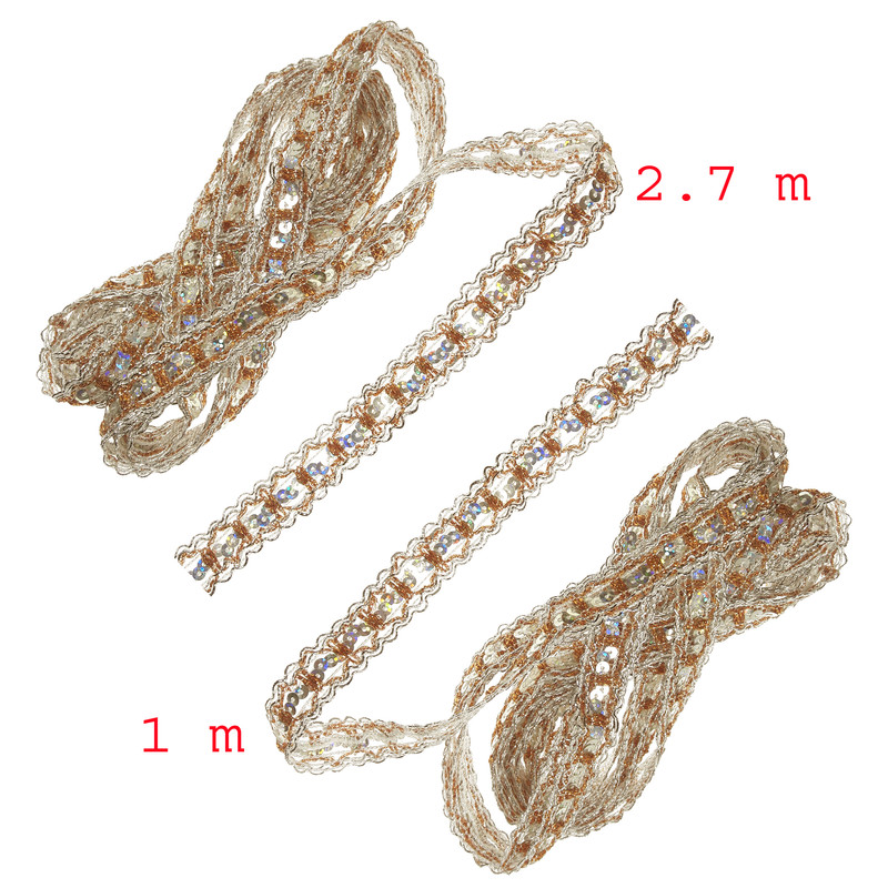 2 عدد یراق لمه_پولک رنگ نقره ای_نارنجی به طول های 2.7 و 1 متر در مجموع 3.7 متر با عرض 1.7 سانتی متر.مناسب تزئینات لباس مانتو کیف و سایر کارهای هنری