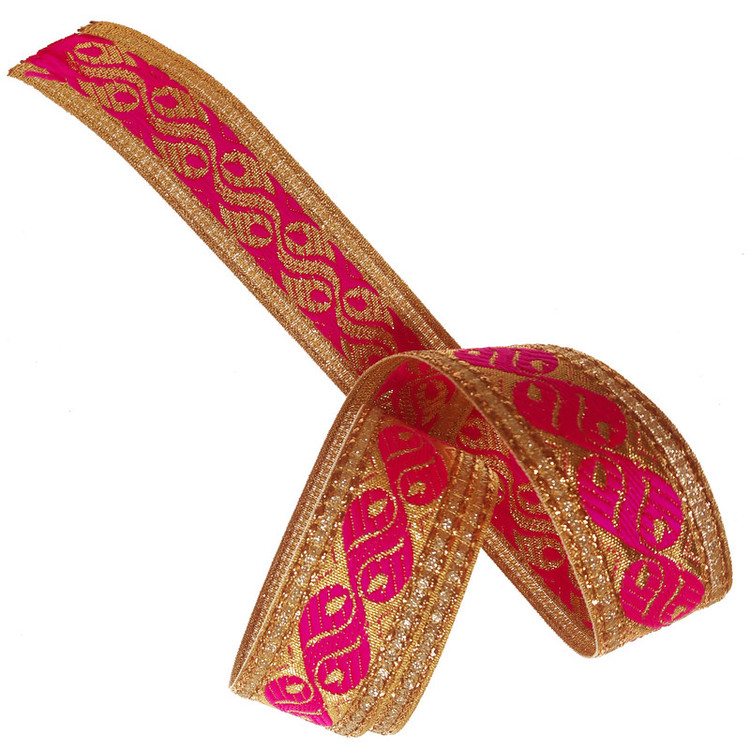 سایر توضیحات : 3.1 متر نوار تزئینی سرخابی_طلایی طبق عکس با عرض حدود 3.5 سانتی متر.مناسب تزئینات لباس مانتو کیف کارهای هنری و سنتی.