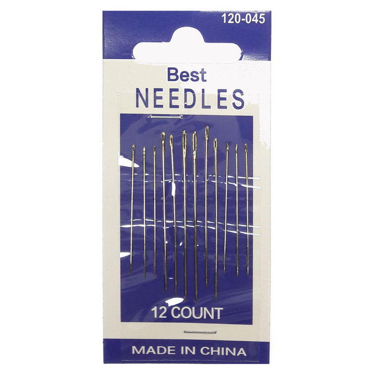 یک بسته سوزن دست 12 عددی.شامل 6 عدد سوزن ریز با طول 3.8 سانتی متر و 4 عدد سوزن با طول 4.6 سانتی متر و 2 عدد سوزن با طول 5 سانتی متر.چشمه سوزن های درشت تقریبا 4 میلی متر و سوزن های دیگر حدود 1 میلی متر است.طلایی بودن ته سوزن ها نخ کردن را آسان تر می کند.