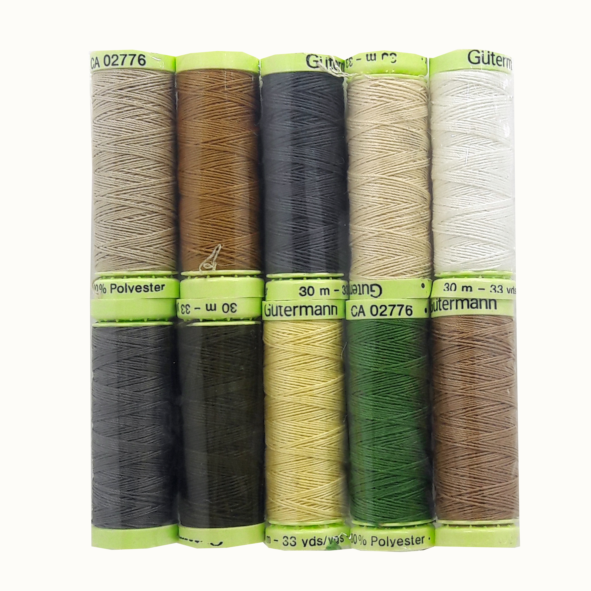 سایر توضیحات : 10 عدد نخ روکار گوترمن آلمان مناسب ضخیم دوزی.هر عدد حدود 30 متر.رنگبندی طبق عکس ارسال می شود.رنگ های طوسی قهوه ای سبز کرم
