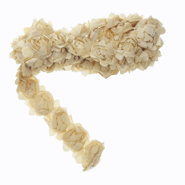 1.8 متر یراق برجسته طرح گل کرم روشن با عرض 3 سانتی متر.به صورت نواری و تک می توان استفاده کرد.مناسب تزئینات مانتو لباس کیف کفش کارهای هنری و سنتی.حدود 70 گل در این متراژ وجود دارد.