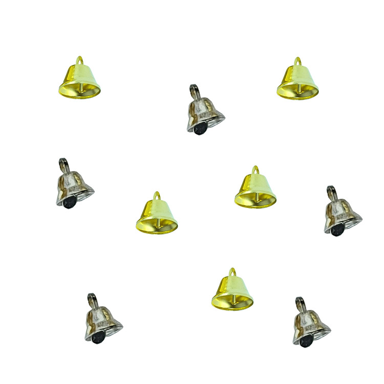 10 عدد زنگوله به قطر 1.5 سانتی متر در رنگ های متنوع طلایی نقره ای آبی سبز بنفش تقدیم می شود.رنگ ها به صورت اتفاقی ارسال می شود.ابعاد این زنگوله 1.5x1.5x1.5 سانتیمتر است.