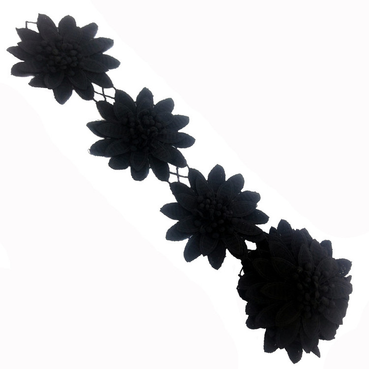 80 سانتی متر یراق مشکی گل برجسته با عرض 10 سانتی متر.8 عدد گل در این متراژ وجود دارد که می توان به صورت تک تک هم روی لباس تزئین کرد.