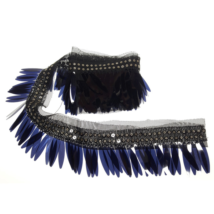 1.5 متر یراق پولک مشکی با پولک های ریز طلایی.این نوار با عرض 6 سانتی متر است و رنگ پولک های چشمی بلند مشکی است و جلوی نور سرمه ای دیده می شود ولی در حالت معمولی مشکی دیده می شود.مثل ورق رادیولوژی.مناسب تزئینات لباس مانتو دامن و دکور های زیبا