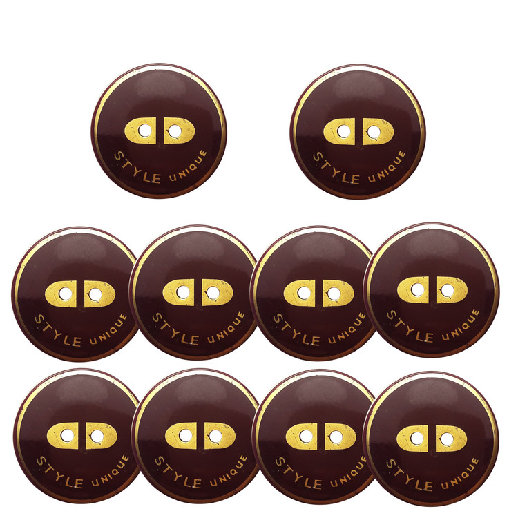 10 عدد دکمه صدفی سایز 3x3 و ضخامت 0.4 سانتی متر.رنگ زرشکی کمی مایل به بنفش با طلایی طبق عکس.مناسب پالتو مانتو و غیره.لطفا به ابعاد دکمه دقت بفرمایید.