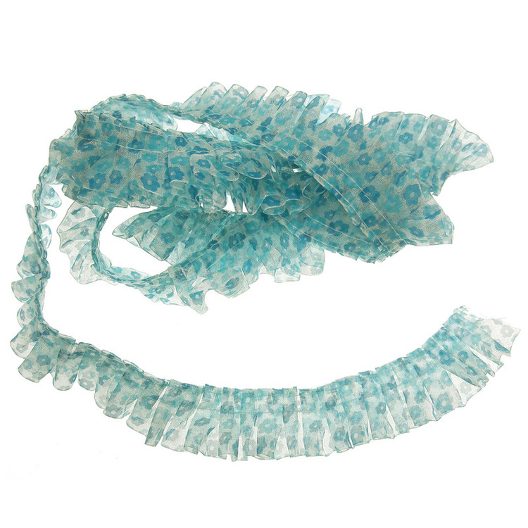 180 سانتی متر یراق پلیسه آبی زنگاری طرح دار با عرض حدود 2.7 سانتی متر.مناسب لباس دامن و تزئینات هنری