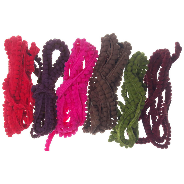 سایر توضیحات : 6 عدد یراق پم پم به طول (1.2 متر بنفش + 2 متر سرخابی + 1 متر سبز + 1.2 متر زرشکی + 1.9 متر قرمز + 1.9 متر قهوه ای)در مجموع 9.2 متر.عرض یراق 1 سانتی متر.مناسب تزئینات لباس و عروسک سازی و کارهای هنری