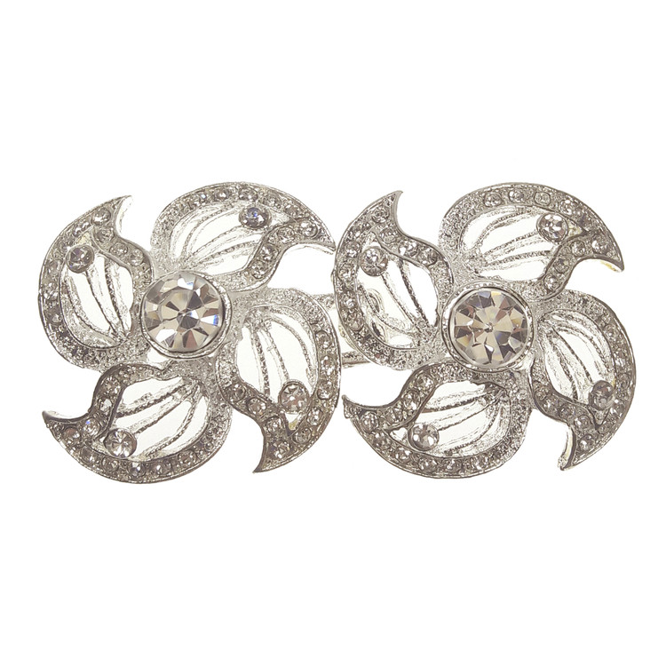 یک عدد دکمه جفتی نگین دار فلزی دوختنی با ابعاد 6x3 سانتی متر.رنگ نقره ای طبق عکس ارسال می شود.بسیار شیک مناسب کت و مانتو مجلسی.این دکمه به صورت نر و ماده مثل قزن به هم متصل می شود و نیازی به جا دکمه ندارد.لطفا به ابعاد دکمه دقت بفرمایید.