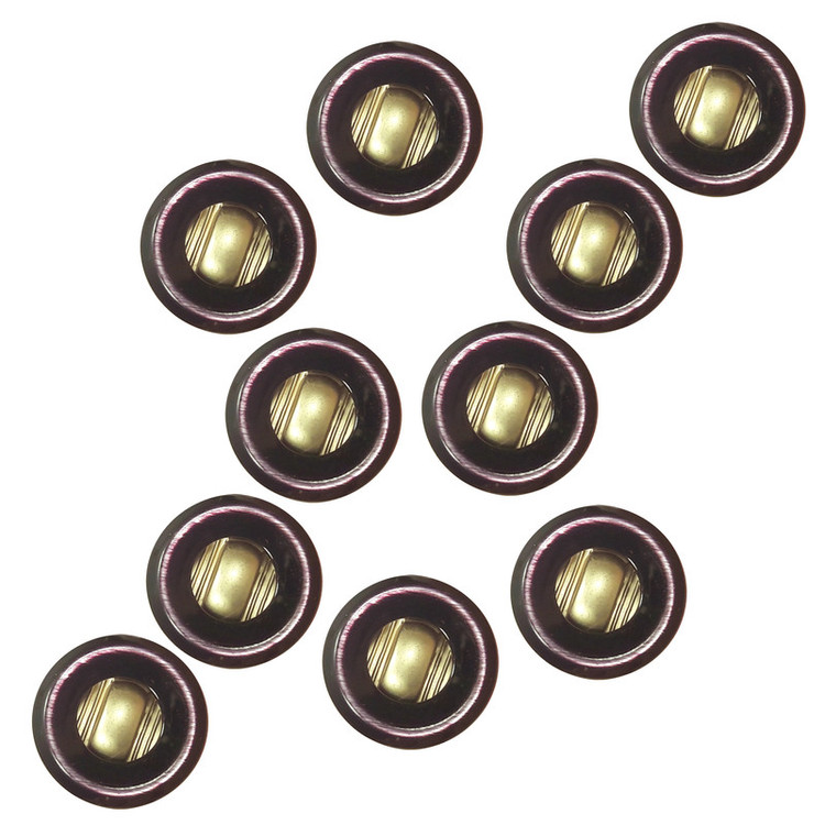 10 عدد دکمه پایه دار با قطر 2 و ضخامت 0.8 سانتی متر رنگ بنفش تیره_طلایی مات.برای بهتر دیده شدن کالا از بزرگنمایی استفاده شده لطفا به ابعاد دکمه دقت بفرمایید.