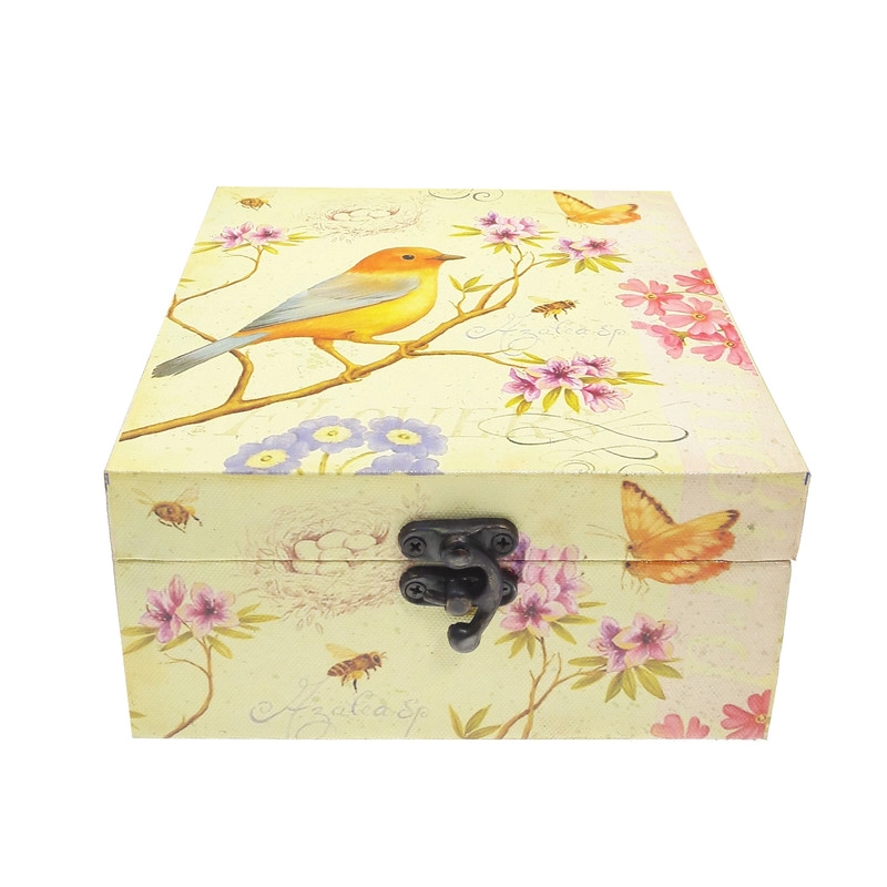 سایر توضیحات : یک جعبه بسیار زیبا با ابعاد 16x16x8 سانتی متر مناسب لوازم خیاطی و جعبه کادویی زیور آلات لوازم تحریر لوازم آرایش و غیره.رنگ و طرح دقیقا طبق عکس ارسال می شود.