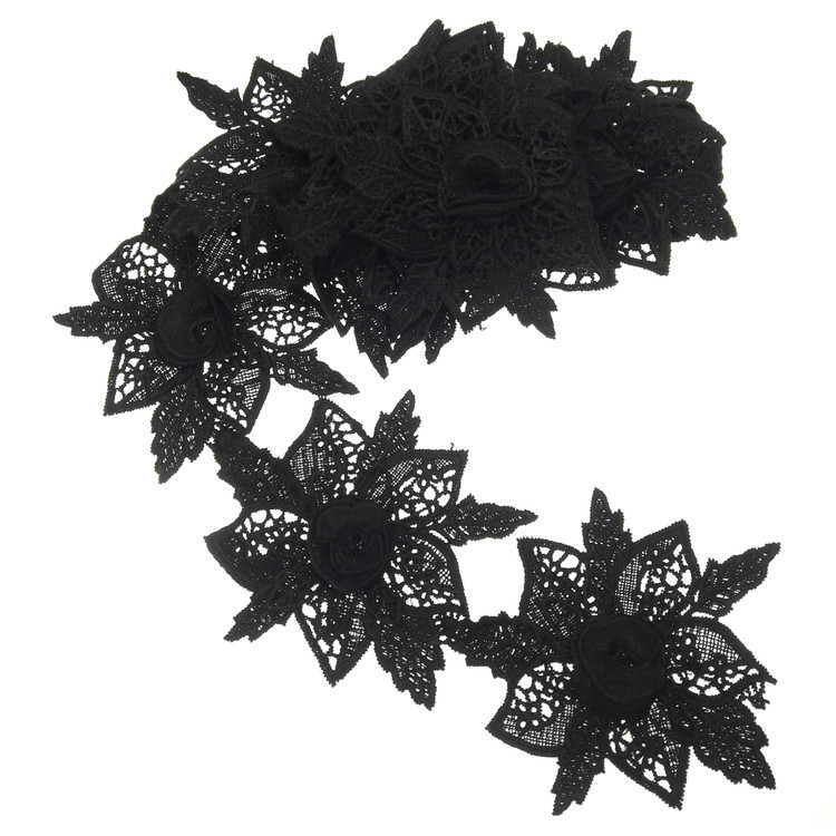 1 متر نوار گل برجسته با عرض حدود 9 سانتی متر.حدود 14 گل در این متراژ وجود دارد که می توان به صورت تک تک یا نواری روی کار تزئین کرد.مناسب مانتو کت لباس مجلسی کیف و سایر تزئینات.رنگ مشکی و طرح طبق عکس ارسال می شود.