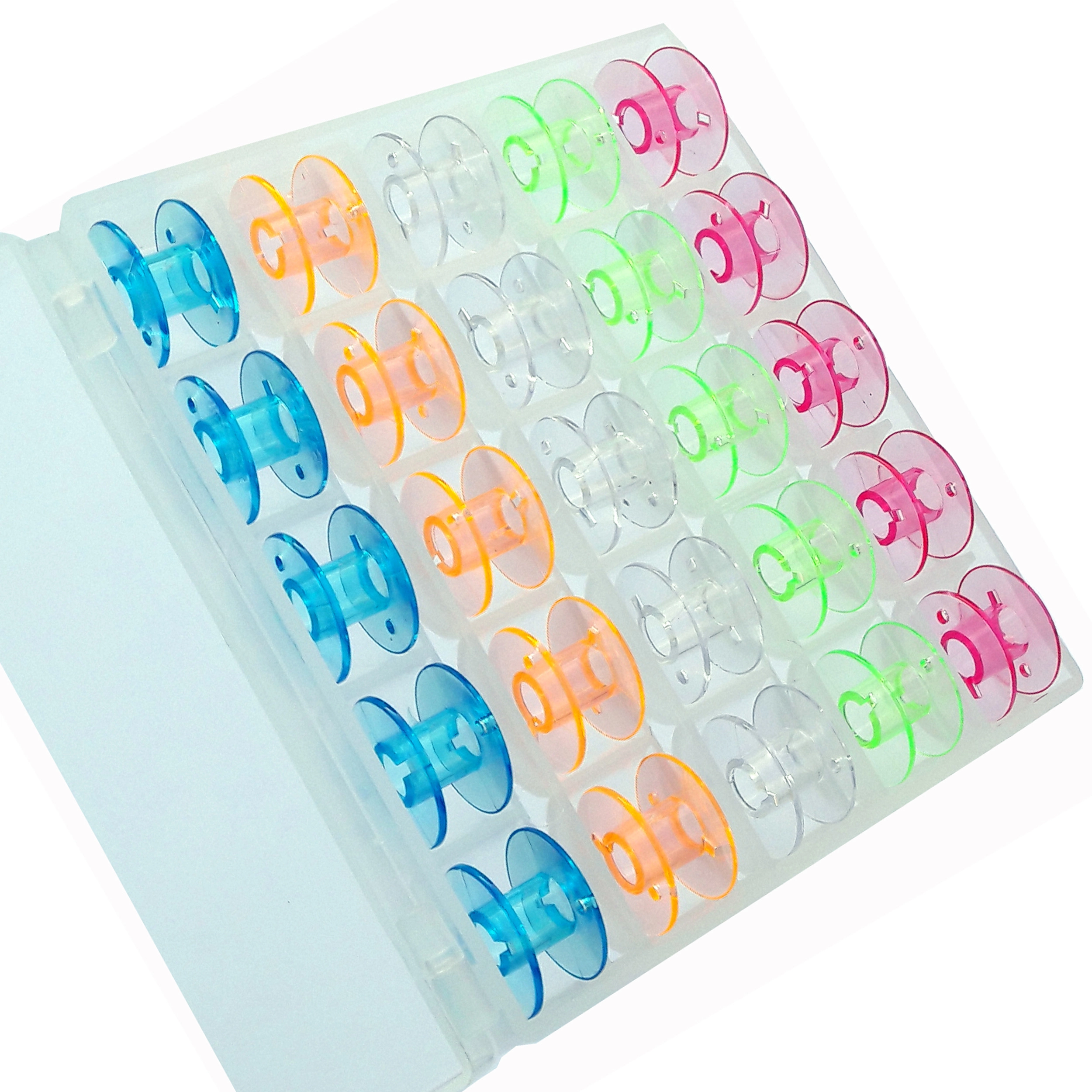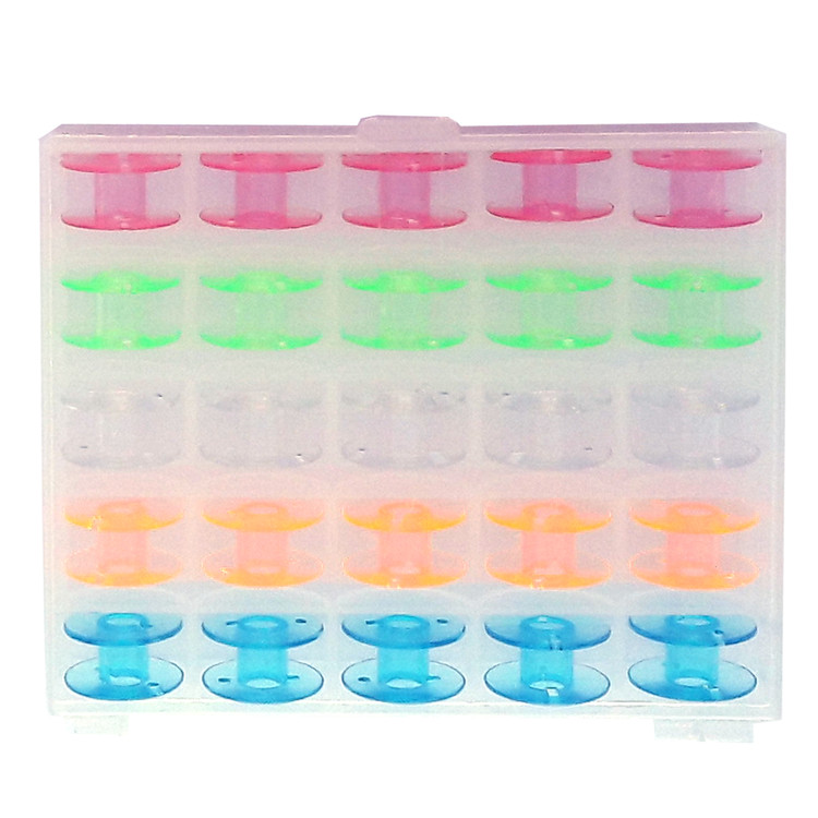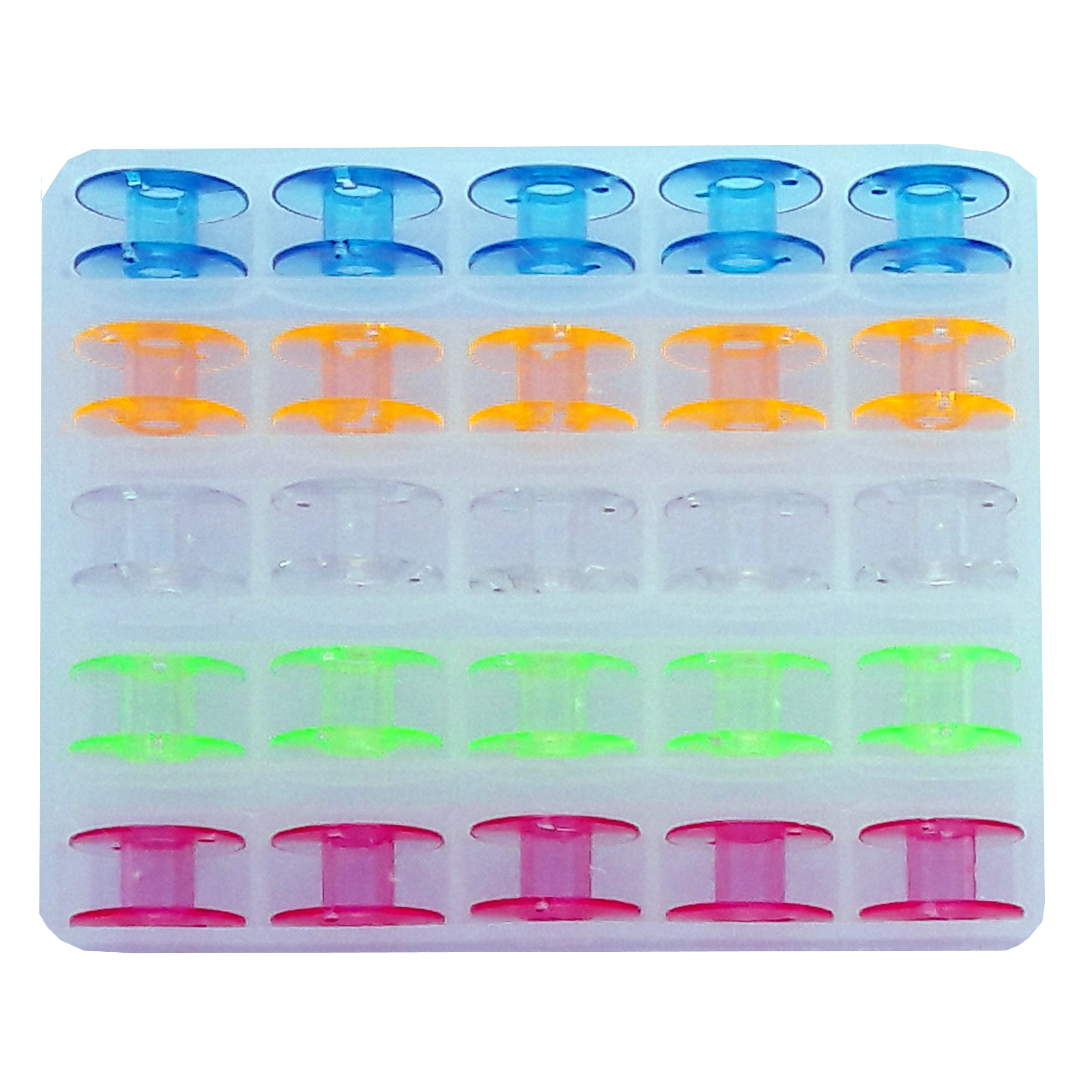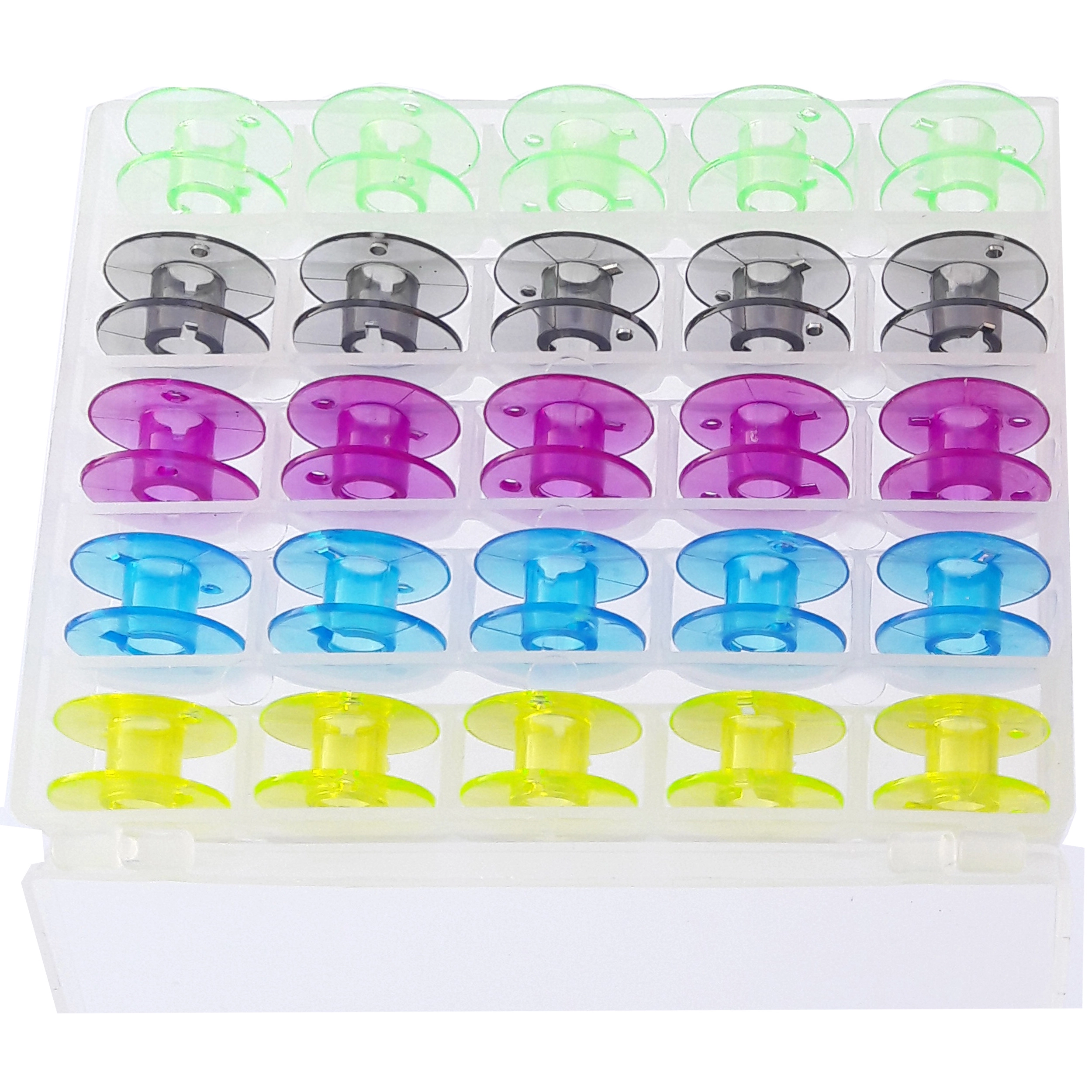 جعبه ماسوره به همراه ۲۵ عدد ماسوره رنگی.مخصوص چرخ خیاطی خانگی.ابعاد ماسوره ۲x۲x۱ سانتی متر.کیفیت بسیار عالی