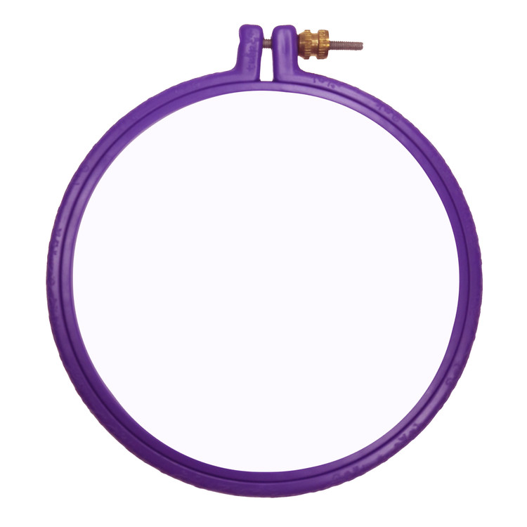کارگاه گلدوزی سایز 19 سانت رنگ بنفش.روی بدنه کارگاه طرح داره.وسیله ای برای ثابت و محکم کردن پارچه است تا سوزن دوزی بر روی پارچه به راحتی انجام شود.