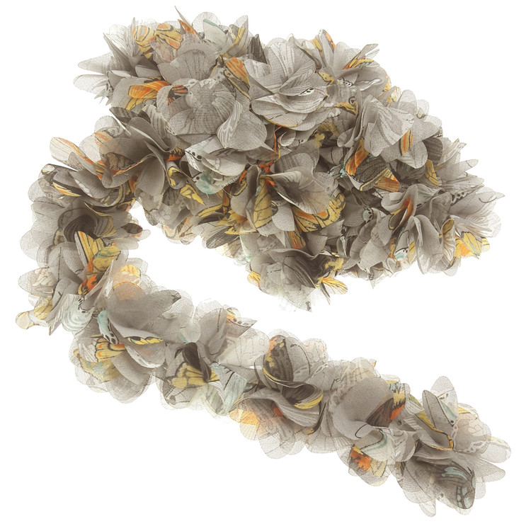 ۲.۷ متر یراق گل برجسته رنگ قالب طوسی طبق عکس با عرض حدود ۴ سانتی متر.مناسب تزئینات لباس مانتو و کارهای هنری و سنتی.