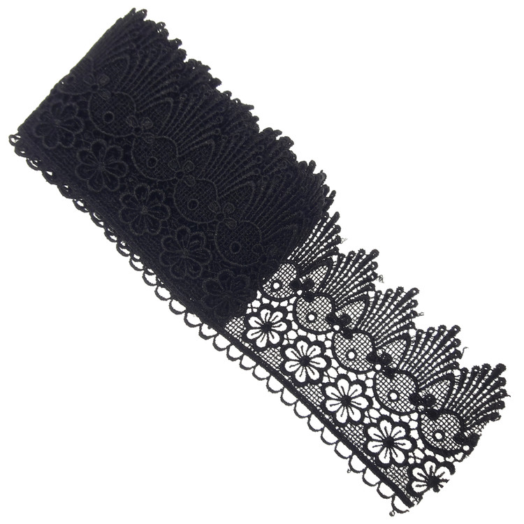 ۱.۹۵ متر یراق گیپور مشکی با عرض ۷ سانتی متر.طرح و رنگ طبق عکس ارسال می شود.مناسب تزئینات لباس مانتو و کارهای هنری و سنتی