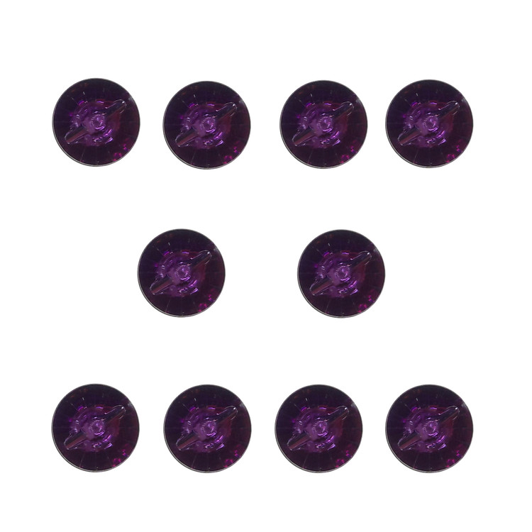 ۱۰ عدد دکمه نگین با قطر ۱.۳ سانتی متر ضخامت حدود ۰.۷ سانتی متر طرح و رنگ مطابق عکس.بنفش تیره.مناسب لباس مانتو و غیره.لطفا به ابعاد دکمه دقت بفرمایید.