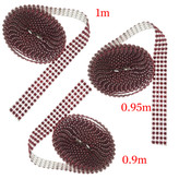 3 عدد نوار طرح نگین 4 ردیفه قرمز به عرض 1.5 سانتی متر با متراژ های مشخص شده در عکس دوم که قابلیت جدا شدن هم دارد و می توان به صورت یک یا دو ردیفه برش زد و برای تزئینات استفاده کرد.موارد مصرف لباس مانتو کیف کفش تل سر عروسک سازی و سایر کارهای هنری