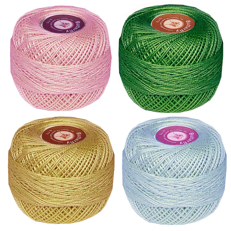 سایر توضیحات : 4 عدد نخ عمامه جنس باتر فلای دقیقا طبق عکس ارسال می شود.مناسب گلدوزی عروسک بافی و غیره.کالباسی سبز کرم نخودی آبی روشن