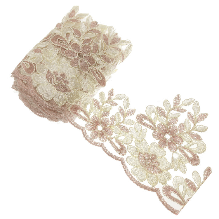 2 متر تور پهن کرم شیری_کالباسی براق با پهنای 13 سانتی متر بسیار شیک مناسب تزئینات لباس مانتو کت و سایر کارهای هنری