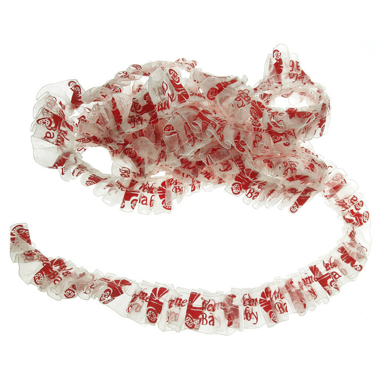 300 سانتی متر یراق پلیسه قرمز_سفید طرح دار با عرض حدود 2.5 سانتی متر.مناسب لباس دامن و تزئینات هنری
