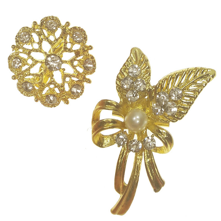 جزئیات: 2 عدد گل سینه یکی با ابعاد 2.5x4 سانتی متر و یکی با قطر 2.5 سانتی متر رنگ نگین نقره ای رنگ بدنه طلایی.روش نصب با سنجاقی که در پشت گل سینه قرار داده شده.لطفا به ابعاد گل سینه ها دقت بفرمایید.