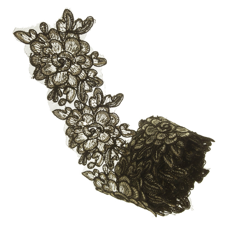 1.4 متر یراق گل مشکی_طلایی لمه با عرض حدود 7 سانتی متر مناسب تزئینات کت مانتو لباس کیف و کارهای هنری.طرح و رنگ طبق عکس.حدود 17 عدد گل در این متراژ وجود دارد که می توان به صورت تک تک یا نواری استفاده کرد.در صورت نیاز قبل از استفاده یک پارچه روی یراق قرار داده و اتو کنید.