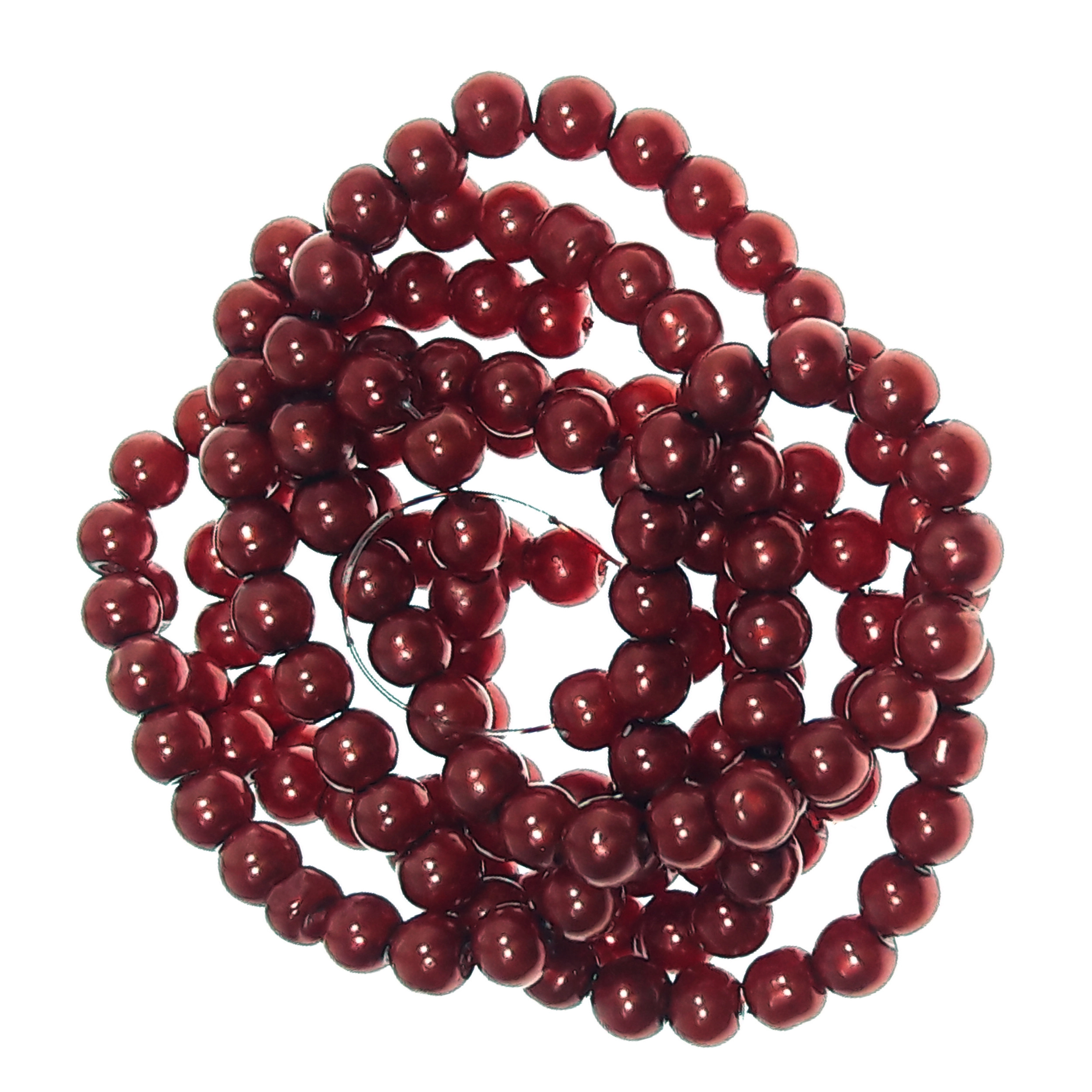 یک بند مروارید سنگی سرخابی تیره مایل به زرشکی سایز 5 (قطر مهره 5 میلیمتر)
