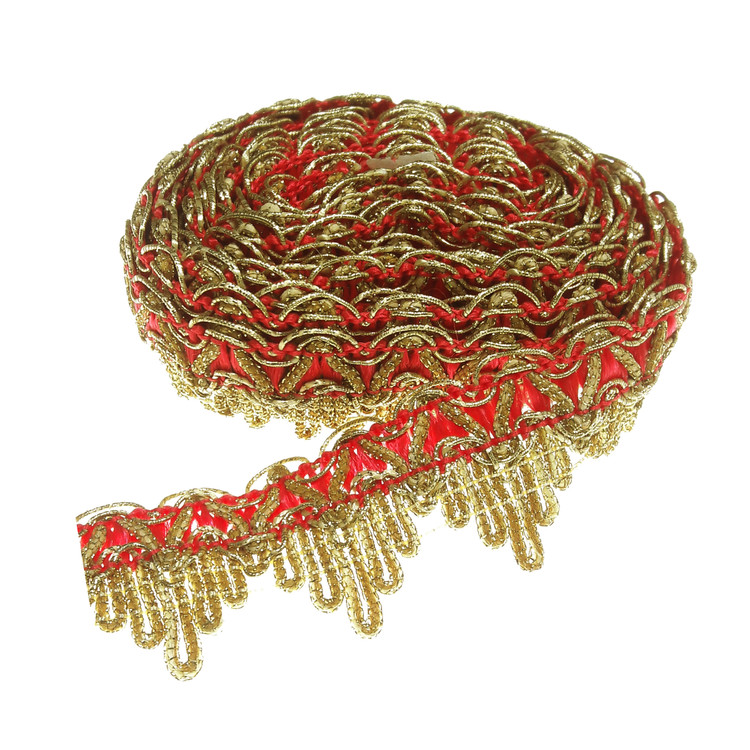 2.5 متر یراق تاجی با عرض حدود 3.5 سانتی متر.طرح و رنگ طبق عکس.رنگ قرمز_طلایی.مناسب تزئین مانتو کت دامن شال ترمه گل سر و سایر کارهای هنری و سنتی