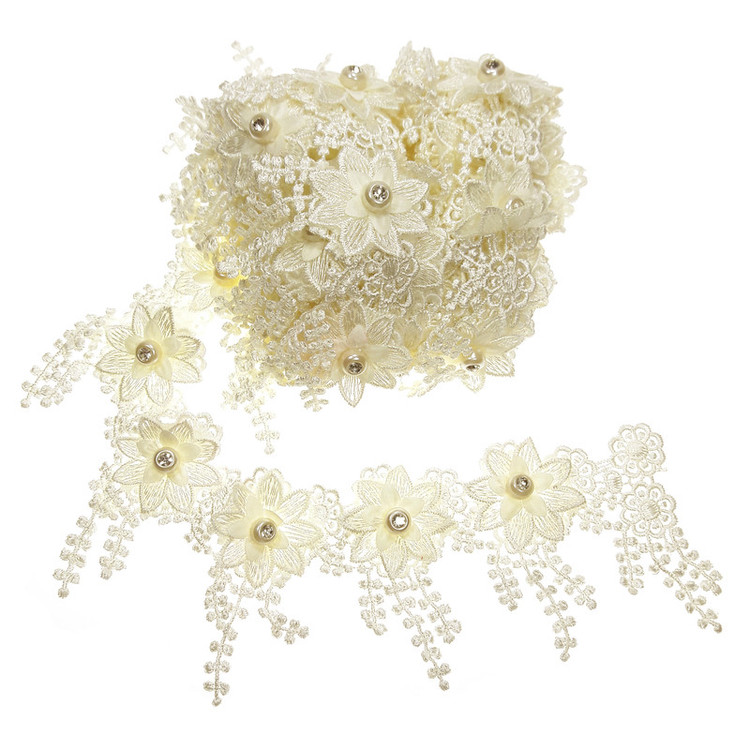3 متر یراق گل برجسته گیپور رنگ شیری نگین نقره ای با عرض حدود 7 سانتی متر مناسب تزئینات کت مانتو لباس کیف و کارهای هنری