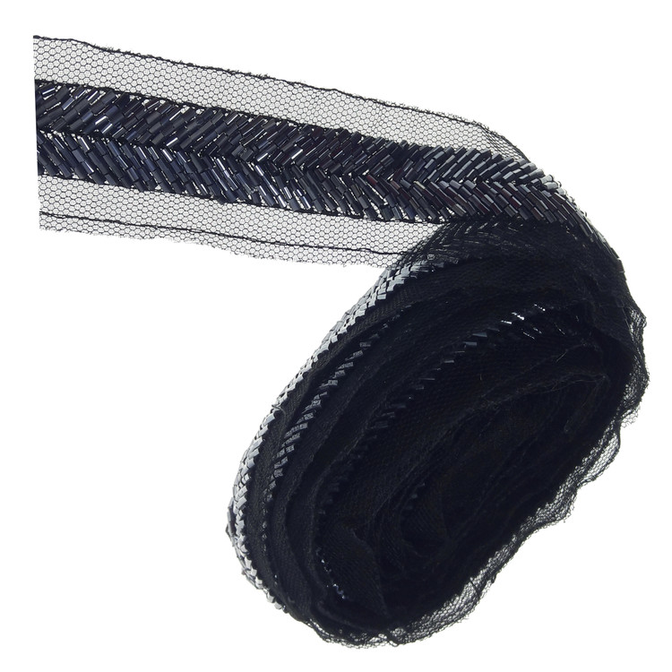 1.1 متر یراق ملیله کار شده با عرض حدود 2 سانتی متر به همراه تور دو طرف.رنگ سرمه ای.مناسب تزئین مانتو کت دامن شال گل سر و سایر کارهای هنری و سنتی