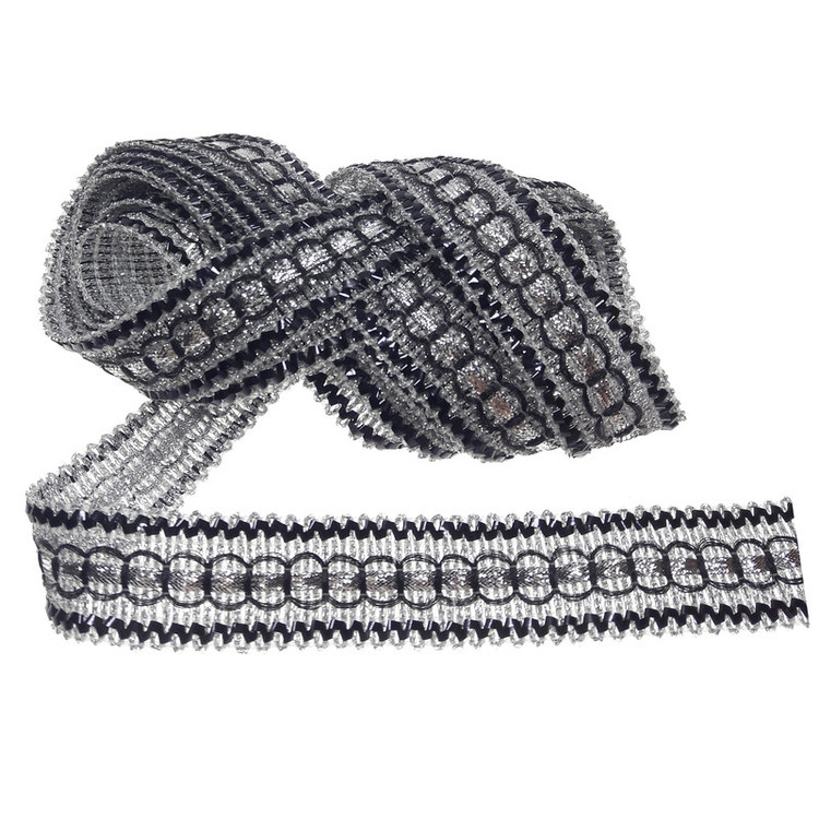 3 متر یراق مشکی_نقره ای با عرض 2.6 سانتی متر طرح و رنگ طبق عکس.مناسب تزئینات لباس مانتو کارهای هنری و سنتی
