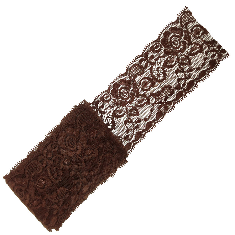 1 متر تور کش لطیف رنگ قهوه ای تیره با عرض حدود 5.5 سانتی متر مناسب تزئینات لباس مانتو دامن و سایر کارهای هنری