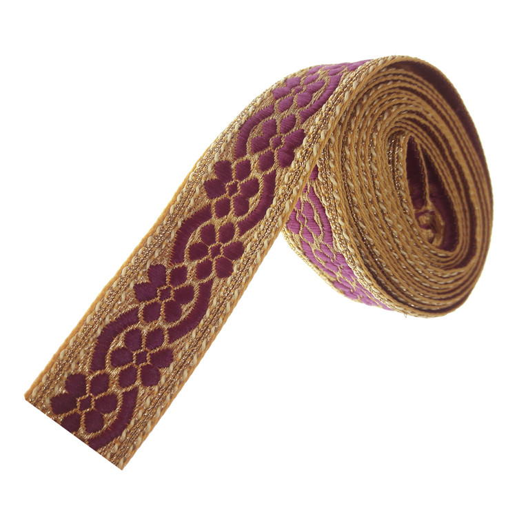 2.7 متر نوار تزئینی لمه با عرض حدود 3 سانتی متر طرح و رنگ طبق عکس.رنگ بنفش_طلایی.مناسب تزئینات لباس مانتو کیف کارهای هنری و سنتی.