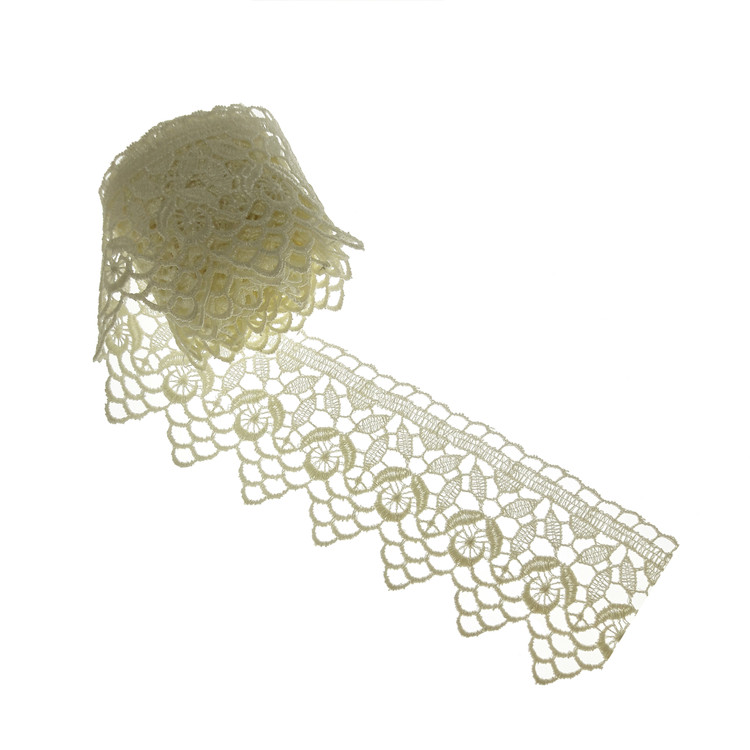 1.6 متر تور گیپور با پهنای حدود 6 سانتی متر طرح و رنگ طبق عکس.رنگ سفید نباتی.مناسب تزئینات لباس کت مانتو دامن و سایر کارهای هنری.