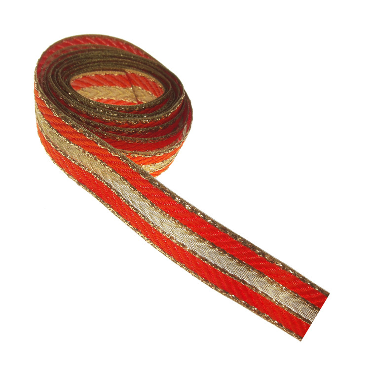 2 متر نوار تزئینی لمه با عرض حدود 2.2 سانتی متر طرح و رنگ طبق عکس.رنگ نارنجی پر رنگ_طلایی.مناسب تزئینات لباس مانتو کیف کارهای هنری و سنتی.