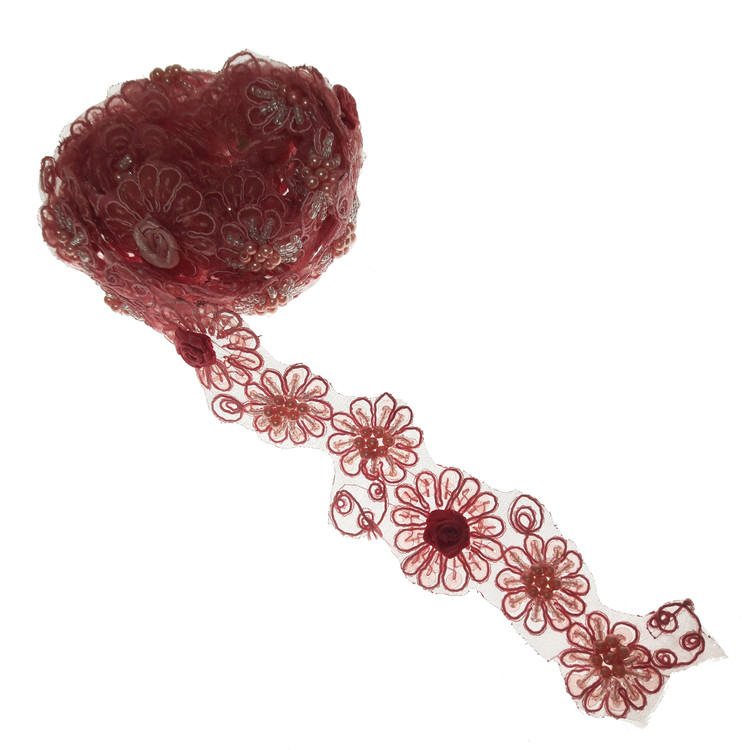 1.6 متر یراق تزئینی با عرض حدود 3.5 سانتی متر طرح و رنگ طبق عکس.رنگ صورتی کالباسی.مناسب تزئینات لباس مانتو کیف کارهای هنری و سنتی.