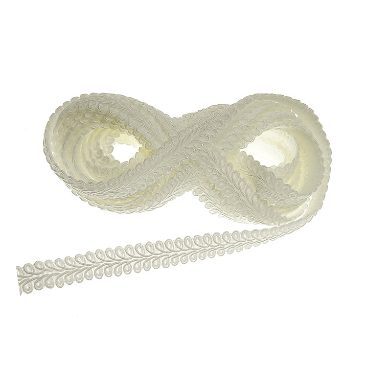 3 متر یراق نخ ابریشم نایلون با عرض حدود 1.2 سانتی متر طرح و رنگ طبق عکس.رنگ سفید نباتی.مناسب تزئینات لباس مانتو کیف کارهای هنری و سنتی.