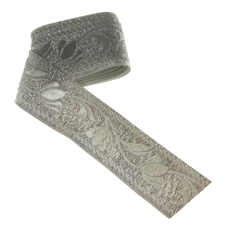 2 متر نوار تزئینی لمه با عرض حدود 3.2 سانتی متر طرح و رنگ طبق عکس.رنگ نقره ای.مناسب تزئینات لباس مانتو کیف کارهای هنری و سنتی.