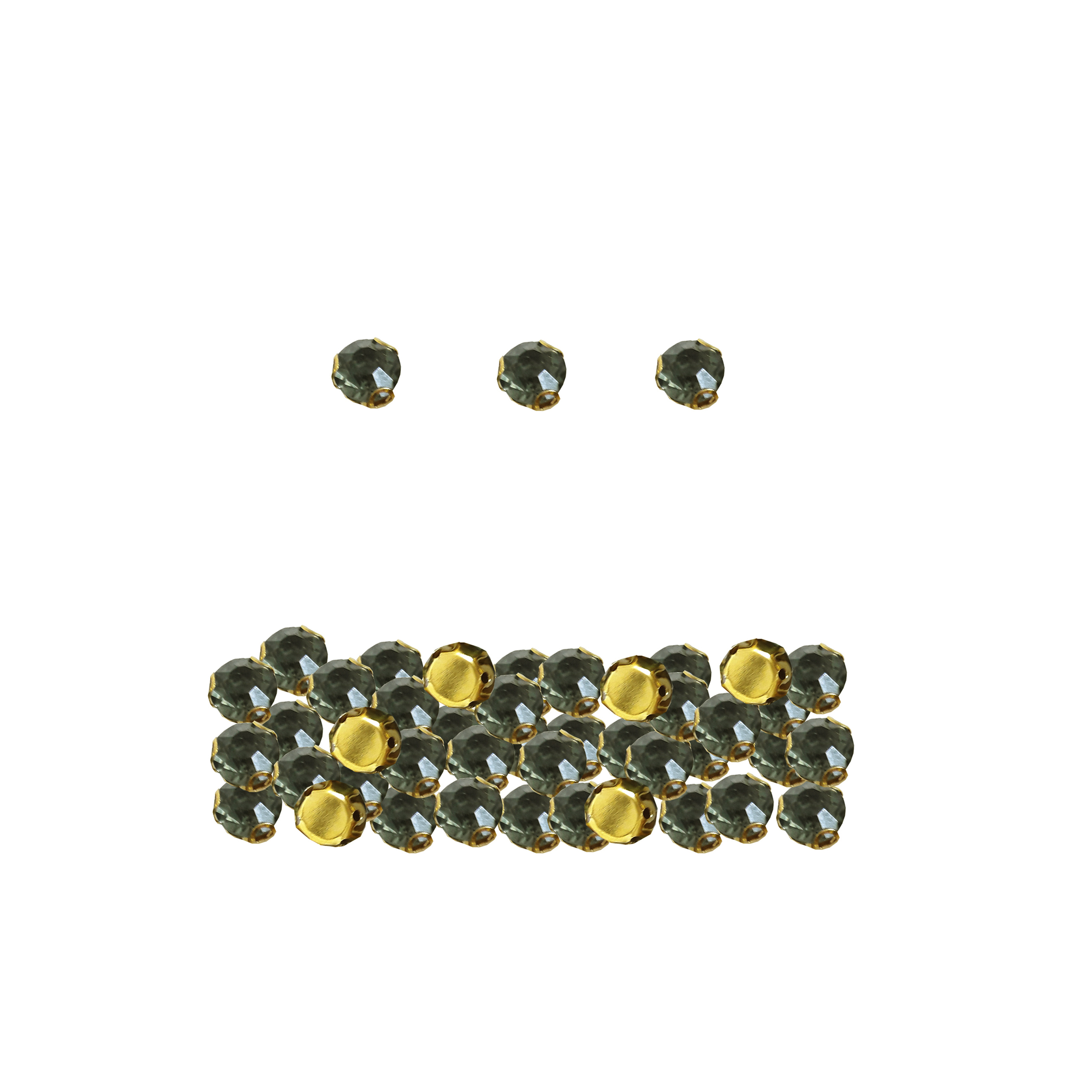 50 عدد نگین گرد پایه طلایی سایز 6 میلیمتر رنگ طوسی مایل به سبز بسیار درخشان با سطح تراش خورده جلوه ای زیبا به کار می دهد. برای تزیین لباس مجلسی مانتو کیف کفش گلسر تل بدلیجات عروسک سازی و سایر کارهای هنری استفاده می شود.