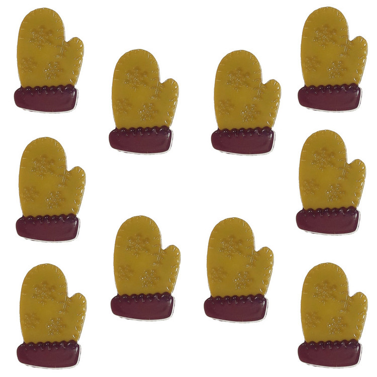 10 عدد دکمه طرح دستکش سایز 1.2x1.9 سانتی متر رنگ زرد کمی مایل به خردلی_بنفش.طرح و رنگ طبق عکس ارسال می شود.مناسب لباس کودک کاردستی و تزئینات هنری عروسک سازی و غیره.لطفا به ابعاد دکمه دقت بفرمایید.