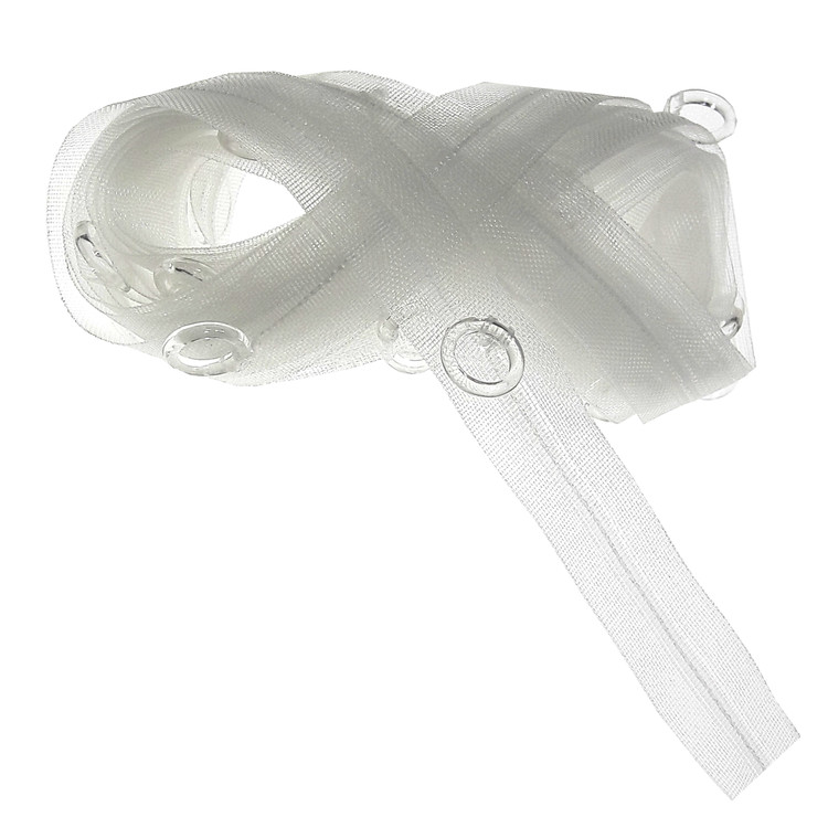 5 متر نوار پرده روفلت بی رنگ حلقه دار با عرض حدود 1.9 سانتی متر و قطر حلقه حدود 1 سانتی متر.جنس نایلون بی رنگ