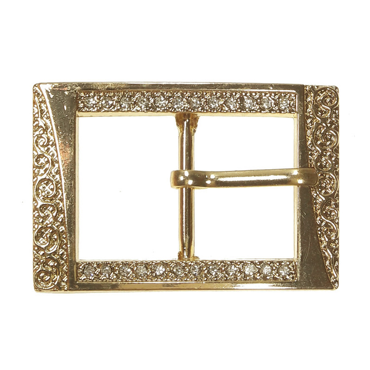 سگک فلزی نگین دار با ابعاد 5.5x3.6 سانتی متر و میله وسط سگک 2.5 سانتی متر.رنگ طلایی روشن با نگین نقره ای.مناسب کمر مانتو لباس و تزئینات هنری